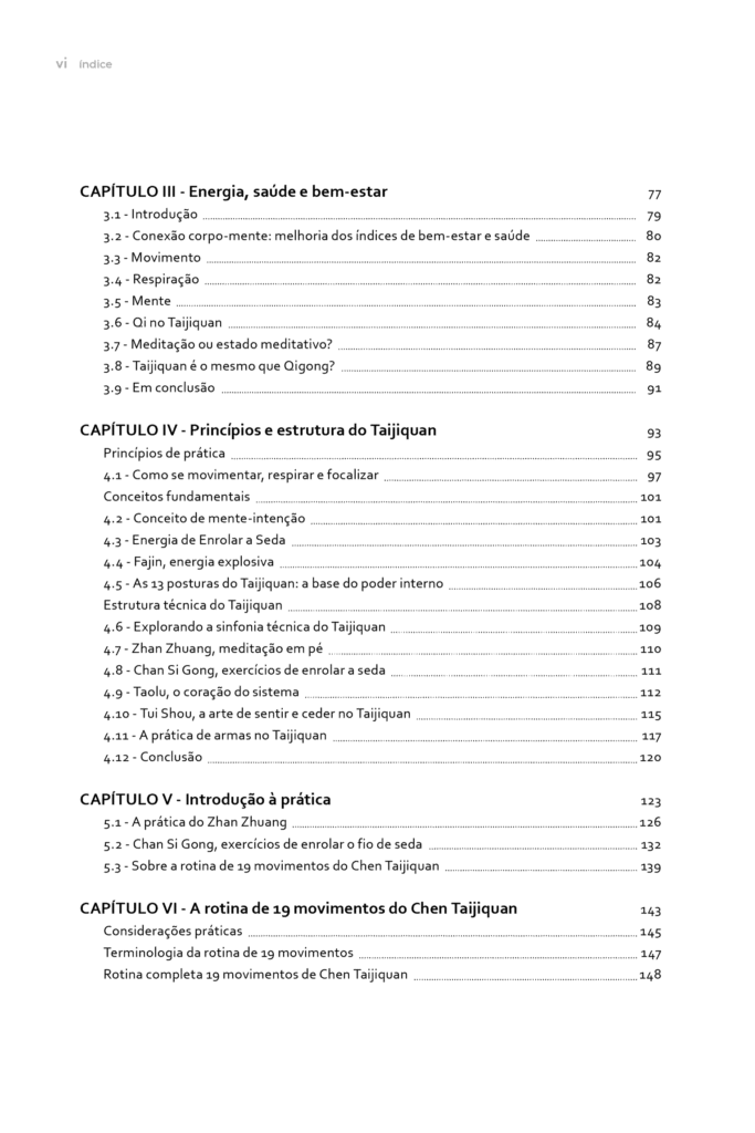 Este livro oferece uma abordagem completa e acessível ao Taijiquan, unindo história, filosofia e técnica numa obra pensada tanto para iniciantes como para praticantes experientes. Baseado em anos de prática, apresenta os princípios internos fundamentais, a estrutura do movimento e a aplicação consciente do corpo e da mente. Ricamente ilustrado, com mais de duzentas fotografias explicativas, o livro conduz o leitor desde os fundamentos até à execução detalhada de uma sequência tradicional, promovendo uma compreensão profunda, prática e coerente do Taijiquan enquanto arte marcial, método de cultivo interno e caminho de desenvolvimento pessoal.